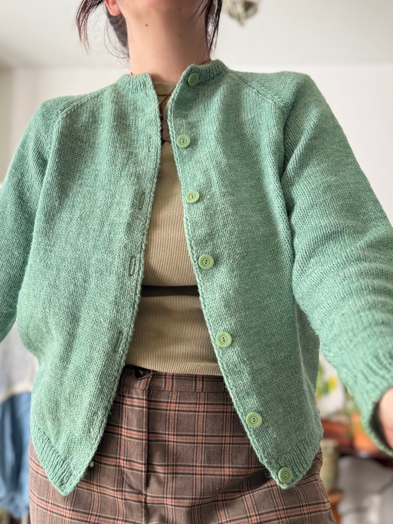 Optimally would fit a small- modeled (and can button) on a medium. Wool and high quality made. No noticeable flaws. I LOVE the color